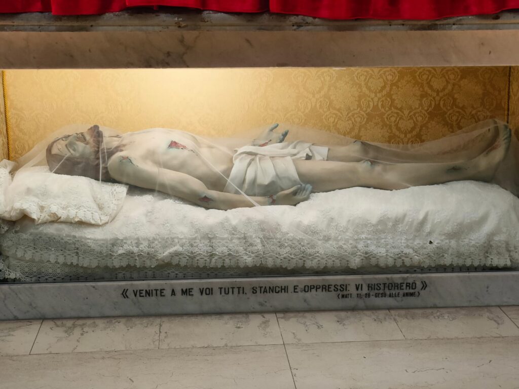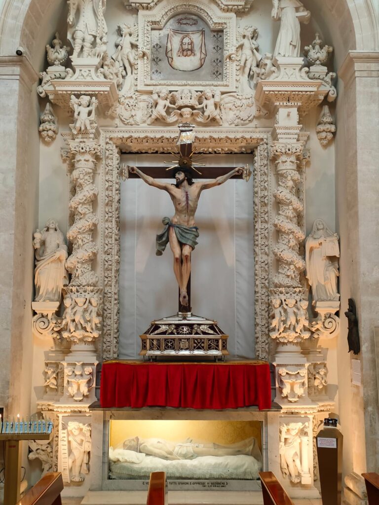 Oggi, nella ricorrenza del 70° anniversario di Elezione a Santuario, l’originale Crocifisso di legno (1700) posizionato sul fondo dell’Abside è sostituito dalla copia conforme all’originale dello Studio 3D di F. Fedele e della pittrice-scultrice A. Dibello (2025).