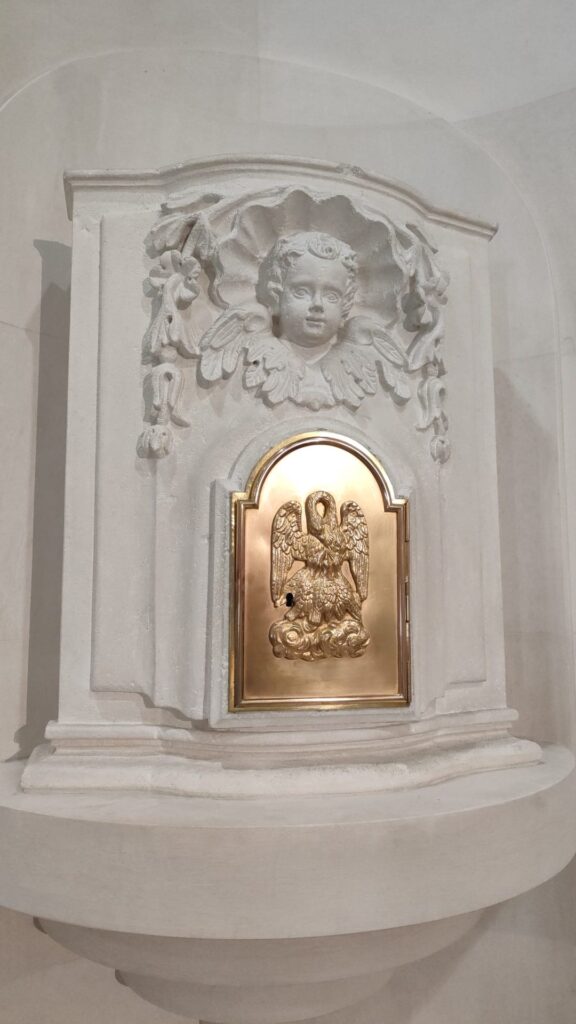 Tabernacolo raffigurante il pellicano, simbolo Eucaristico di Cristo che nutre col suo Corpo