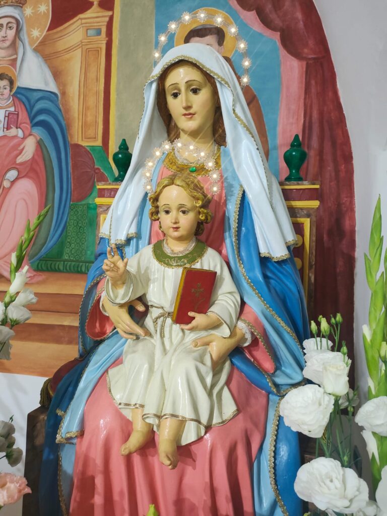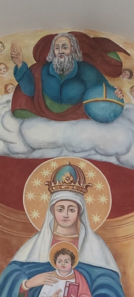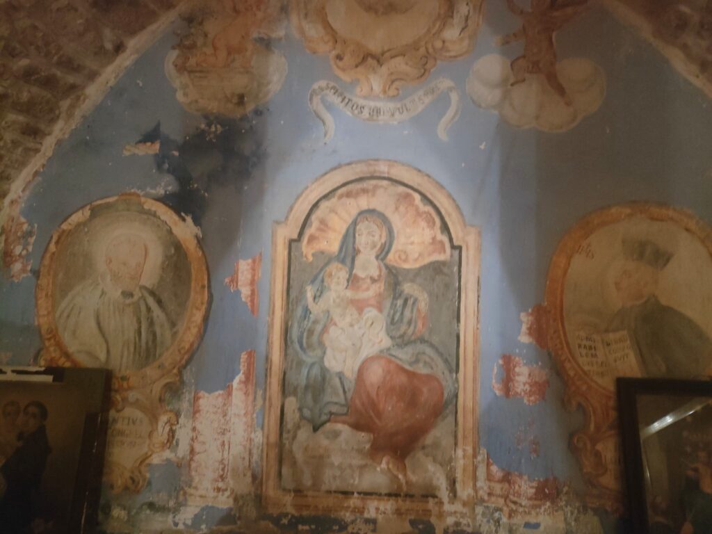 La cappella seicentesca ha un interessante corredo decorativo, preziosa testimonianza della cultura popolare devozionale: in particolare, attira l’attenzione una protettiva effige di Dio Padre che indossa abiti da popolano, che ricorda la figura di ogni contadino che un tempo scandiva la propria esistenza lavorando e prendendosi cura di questa terra.