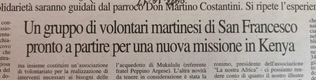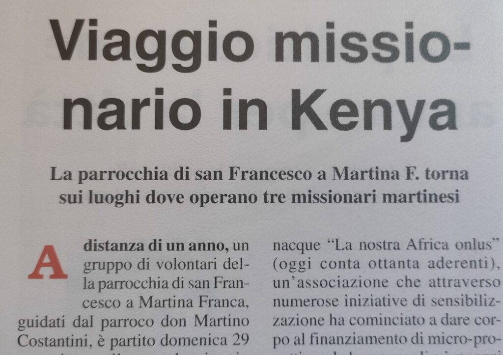 Un aspetto importante dell’attività dell’associazione è anche il sostegno a tre religiosi originari di Martina Franca, impegnati da anni in Kenya per l’evangelizzazione e la promozione umana: