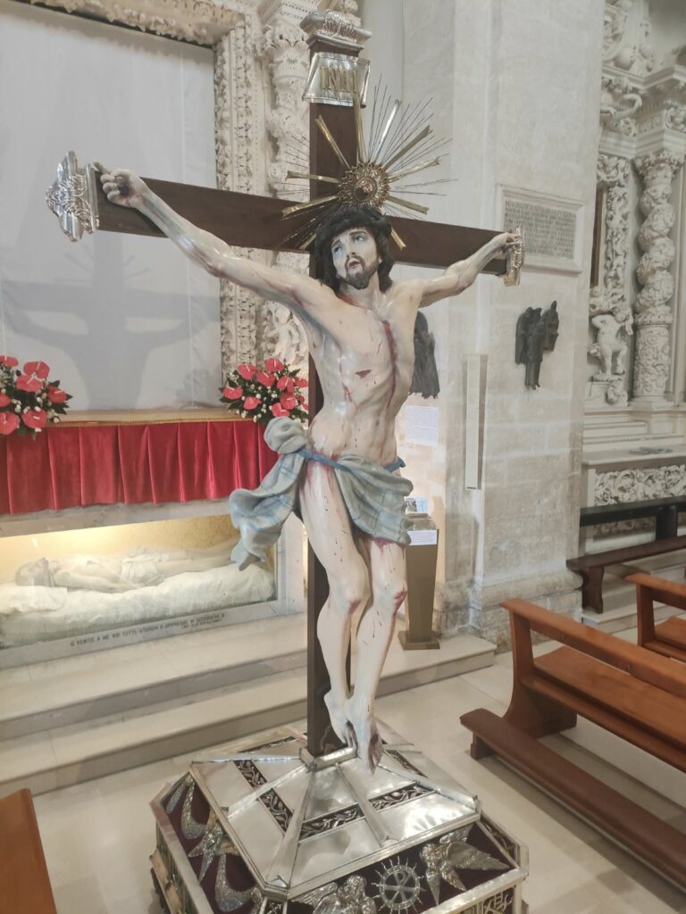 I pellegrini in visita al Santuario resteranno affascinati dalla Cappella dedicata a Cristo Spirante. Essa è un grandioso Inno alla Passione di N.S. Gesù Cristo e prima della sua recente sistemazione sulla parete di fondo dell’abside sul presbiterio, custodiva anche una delle più venerate immagini martinesi della Passione, il famosissimo Cristo Spirante, simulacro in legno di scuola veneziana (1700) raffigurante il Cristo Crocifisso ancora vivo, “spirante” appunto.